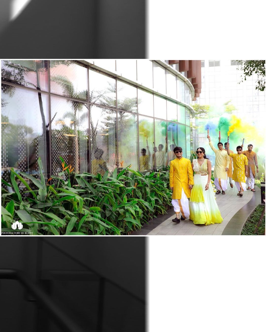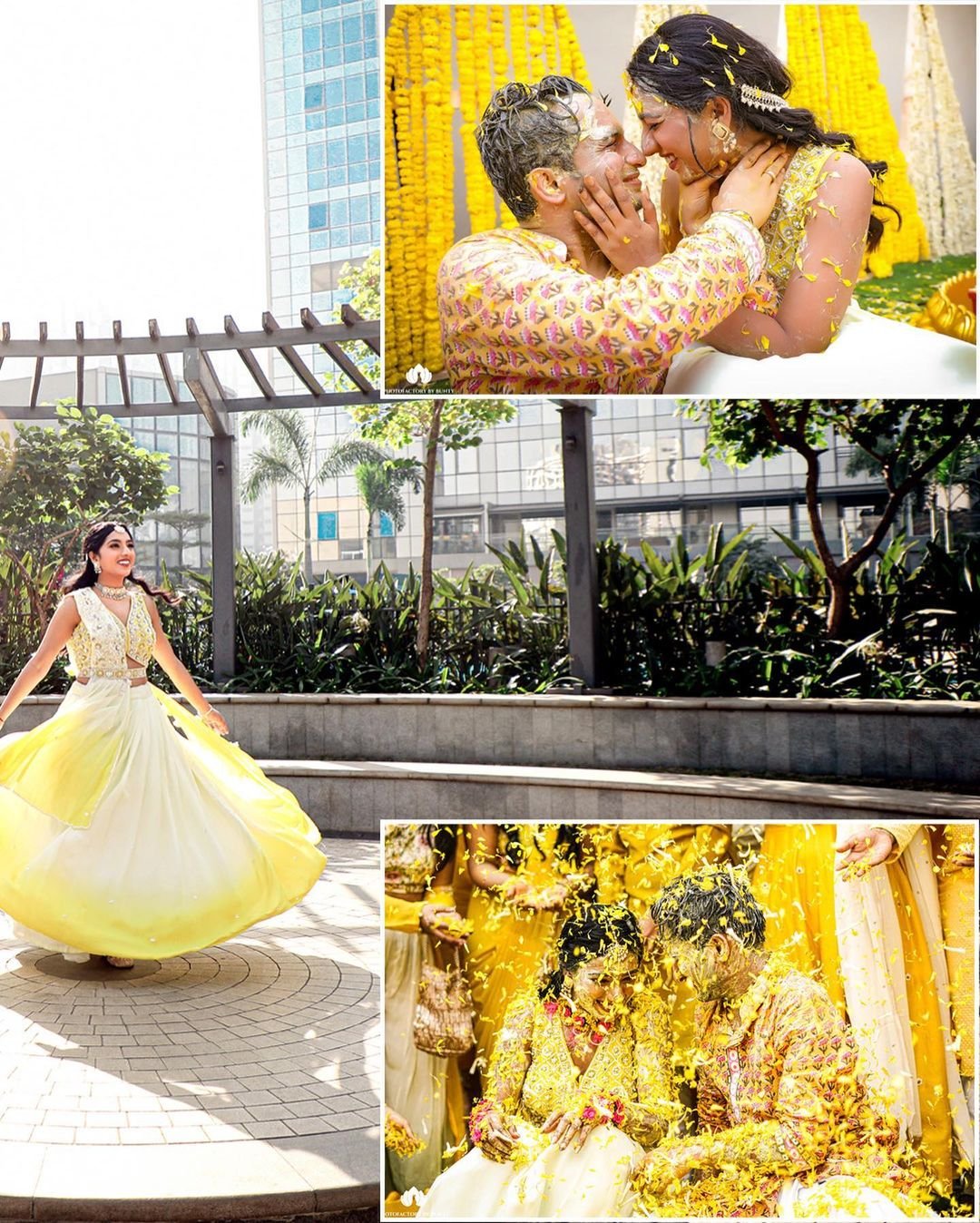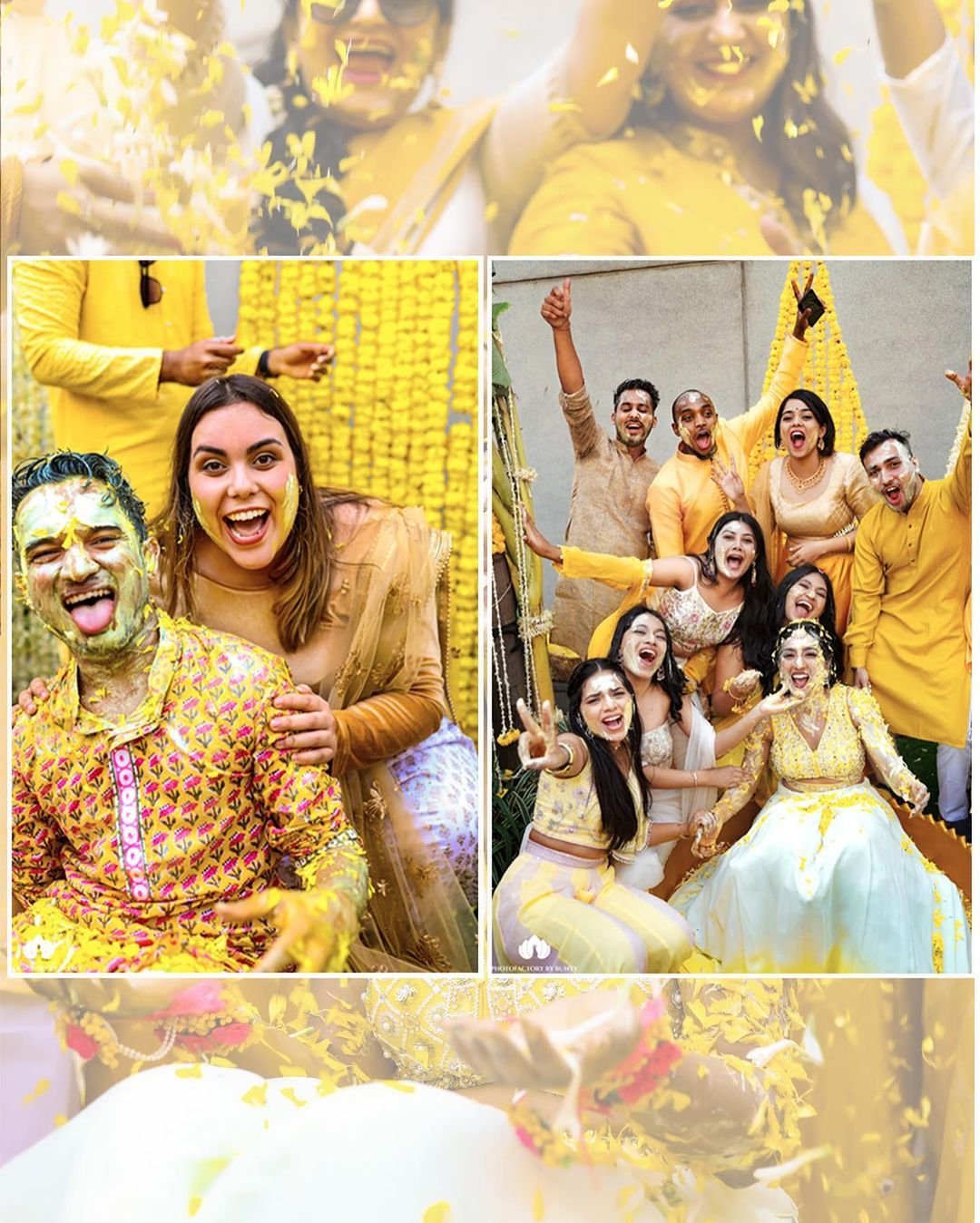 The festivities began with the vibrant Haldi ceremony, celebrated during the golden hour as the sun dipped below the horizon. The open-air setting enhanced the aura of positivity and camaraderie among the close-knit gathering.